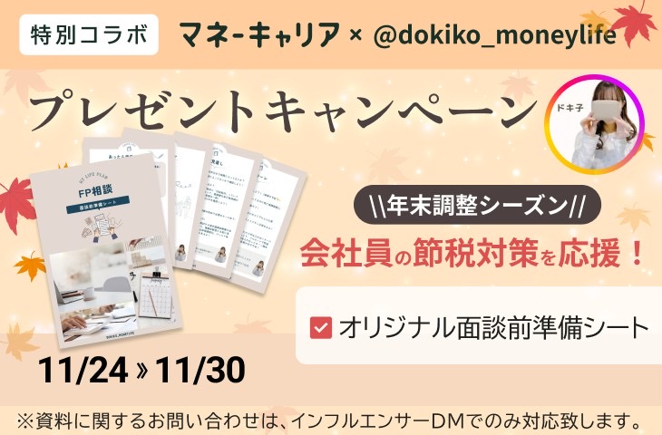 【11月30日まで】ドキ子×マネーキャリアのプレゼントキャンペーンでもらえる豪華特典